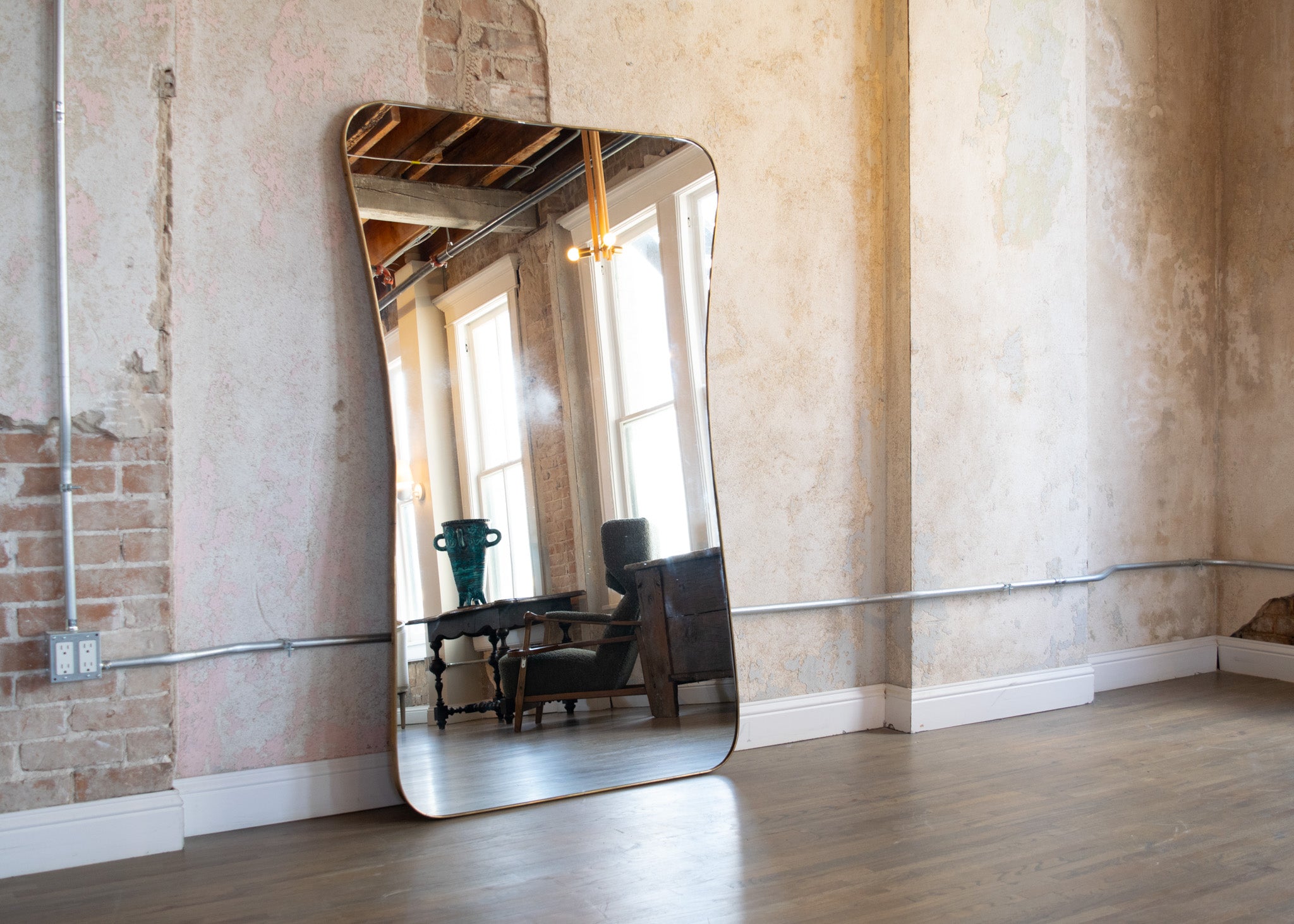 Large Hourglass Brass Mirror in the Style of Gio Ponti
