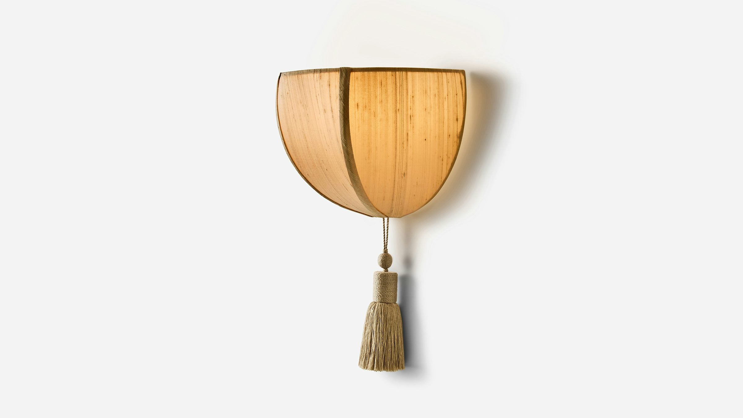 The Lantern Sconce reimagines the classic up-light through the lens of material warmth and artisanal detail. Handcrafted in the U.S., it features richly textured 100% Dupioni Raw Silk that diffuses light with a soft, atmospheric glow. Custom metal hardware and hand-tailored construction speak to its considered construction, while a removable silk tassel adds a touch of movement and whimsy. UL Listed. Damp Rated