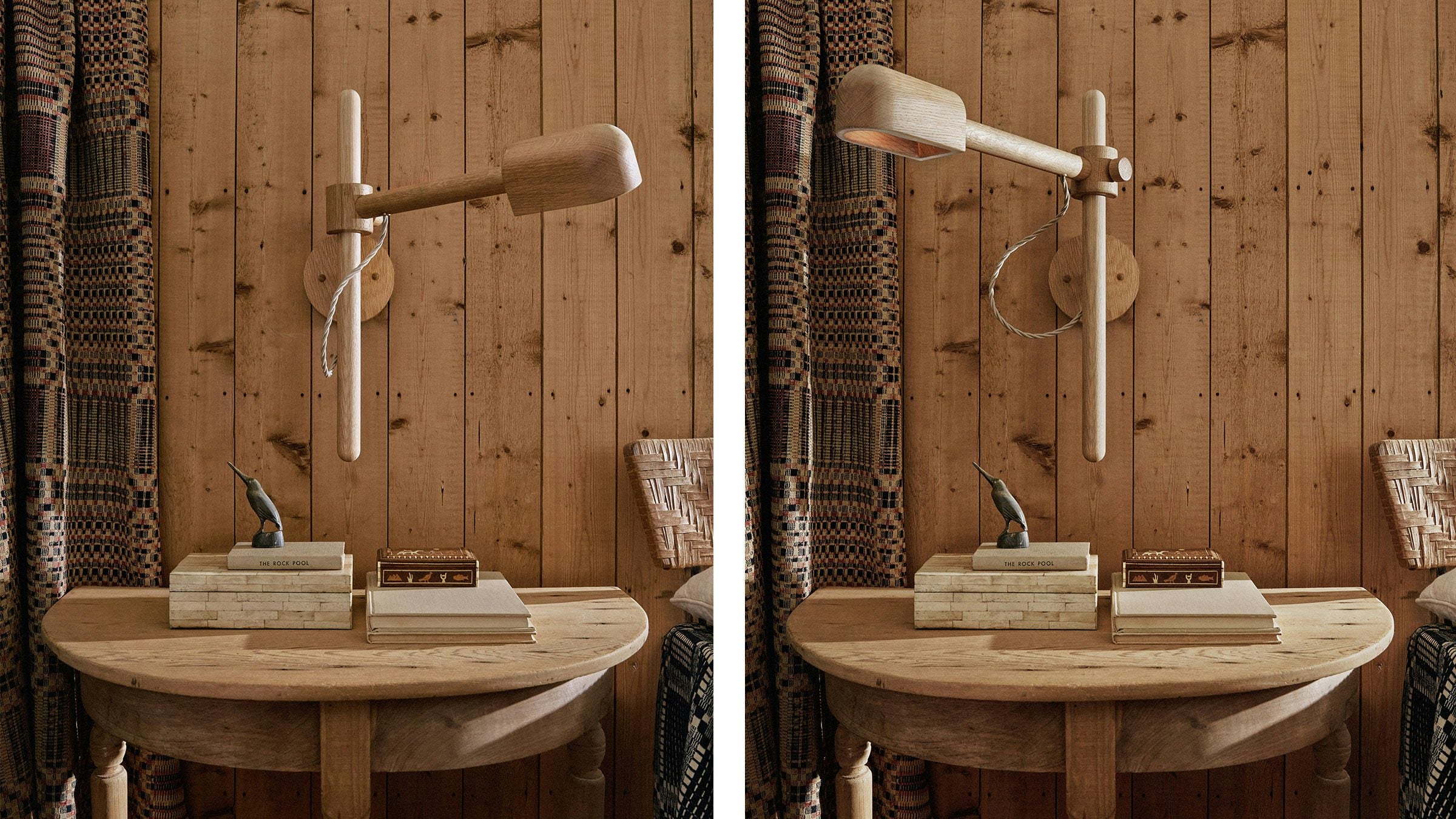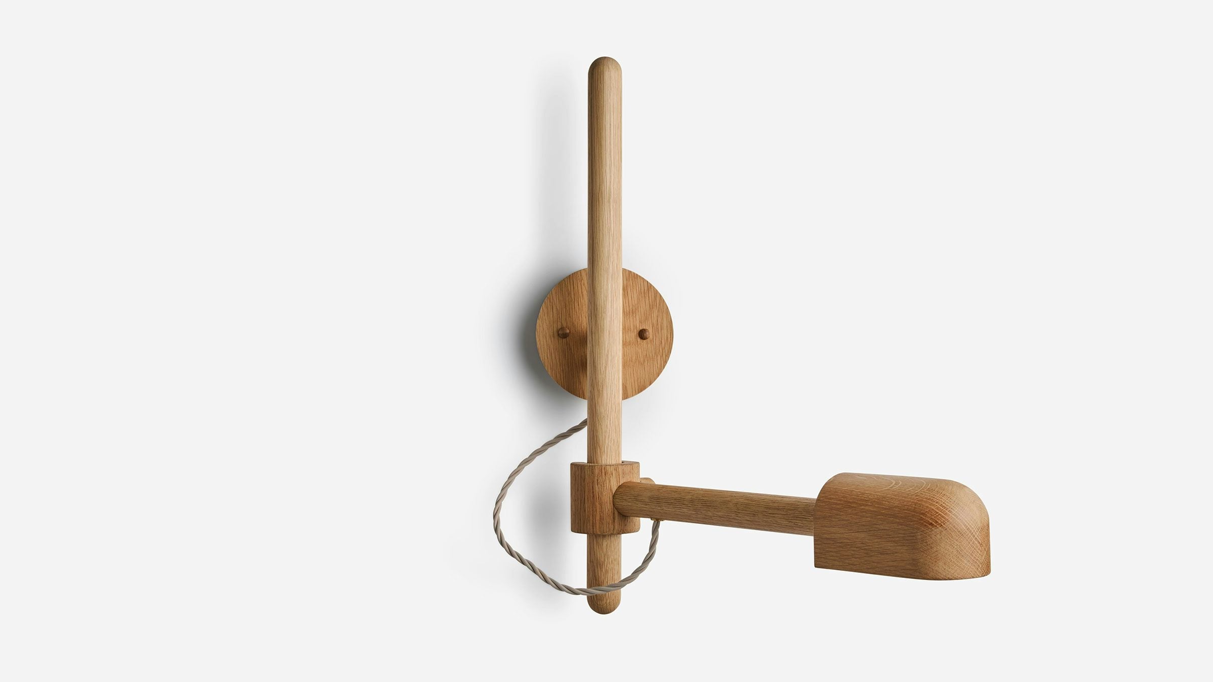 LODGE Pivot Sconce is the first fully adjustable addition to our best-selling Lodge Collection. Utilizing LODGE'S rich material language of turned Natural Oak, this sconce adjusts both up-and-down and side-to-side to create the perfect glow. Best used as a reading lamp or accent light, this playful sconce references modernist Danish and mid-Century American examples of utilitarian wooden lighting. A turned wooden screw knob locks the swinging arm in place, and the fixture’s oak diffuser adjusts from side to side. Both sculpture and luminaire, LODGE Pivot brings the warmth of wood to light. UL/cUL/CE Listed. Damp Rated.